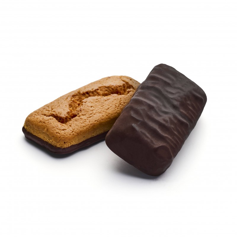 Cioccolato di ricopertura (30%): pasta di cacao; edulcorante: maltitolo, burro di cacao; emulsionante: lecitina di soia, aroma naturale di vaniglia; mix di proteine: collagene idrolizzato, proteine isolate di soia, proteine isolate di pisello, proteine concentrate del siero del latte, albume d'uovo in polvere; albume d'uovo, olio di semi di girasole; edulcoranti: eritritolo, maltitolo, sorbitolo; burro, fibre vegetali: fibra di frumento deglutinato , fibra di acacia, amido di patata; agenti lievitanti: difosfati, carbonati di sodio, bicarbonato di sodio, amido di mais; agente umettante: glicerina; emulsionante: lecitina di soia; aromi: arancia, vanillina, naturali; conservante: sorbato di potassio, sale; antiossidante: alfa-tocoferolo.